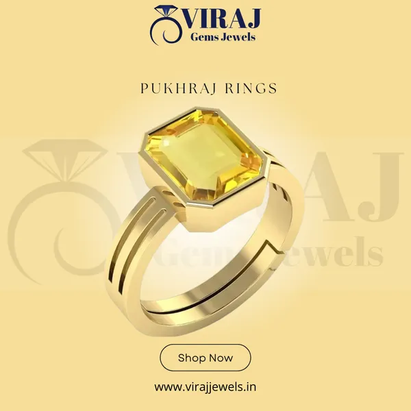 Yellow Pukhraj Created Sapphire Gemstone Gold Plated Ring For Men & Women F..More