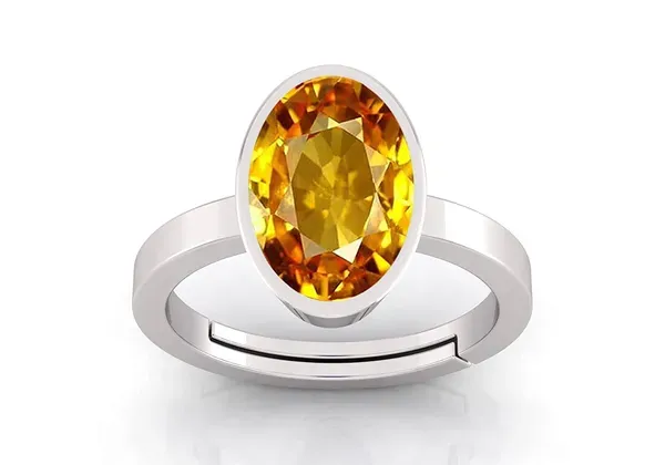 Yellow Pukhraj Created Sapphire Gemstone Gold Plated Ring For Men & Women F..More